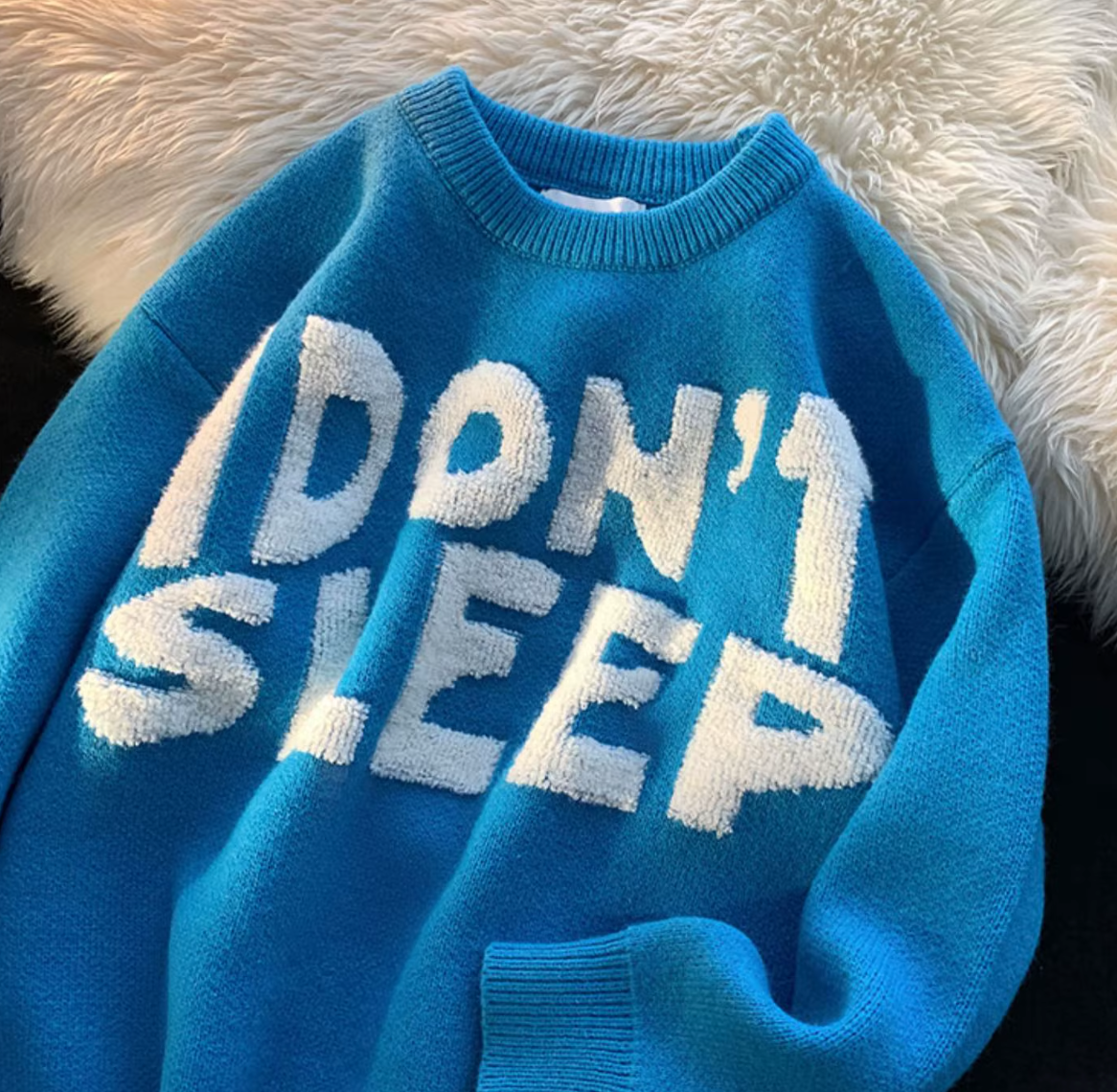 Featuring a high-contrast white graphic against a vibrant electric blue knit, and black, this sweater is designed for the night owls, the dreamers, and the street-style obsessed. With its relaxed, slouchy fit and premium textured lettering, it’s the ultimate "cool-girl" staple for your winter wardrobe.