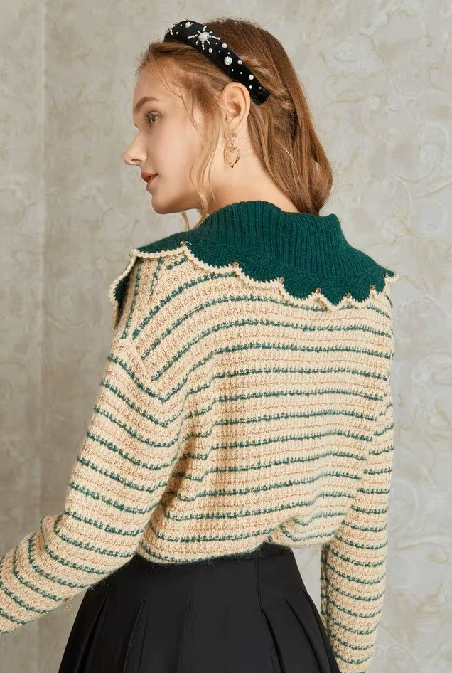 Vintage Elegant Bowtie Striped Sweater Pullover